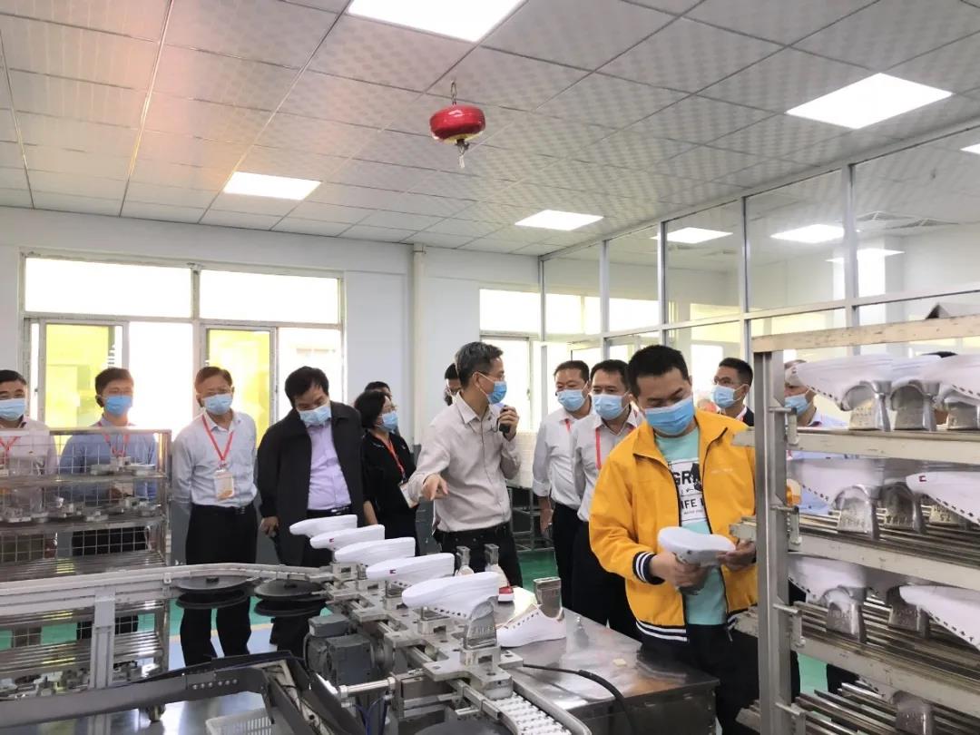 兩批次,近百人,華寶科技全員熱心接待。公司主要負責人帶領專題班學員深入制鞋智能應用車間現(xiàn)場,實地了解制鞋智能產(chǎn)線。