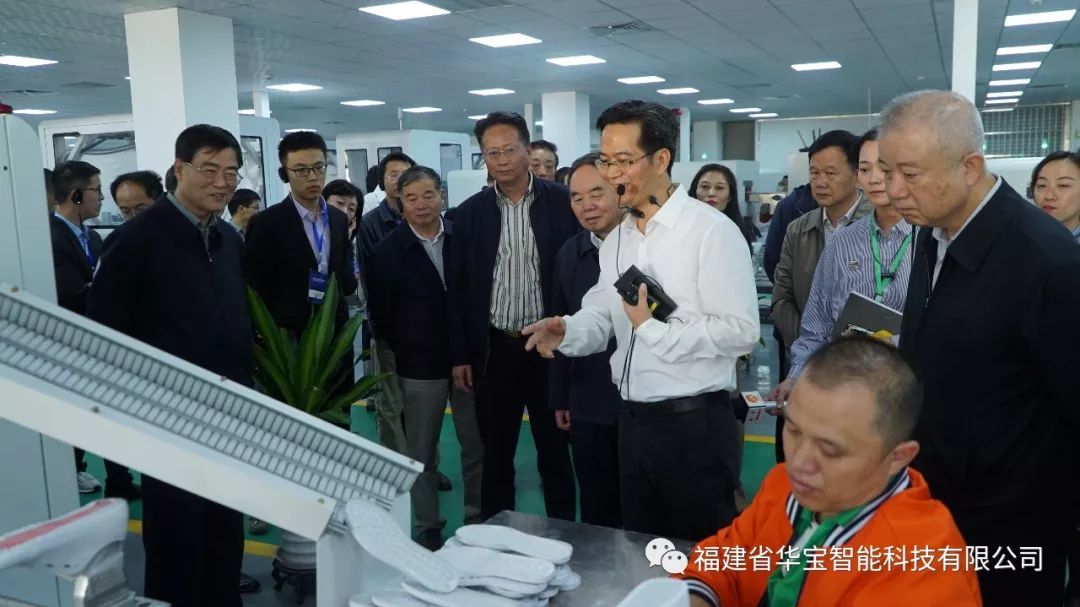 同日,工業(yè)和信息化部部長苗圩、 國家制造強國建設(shè)戰(zhàn)略咨詢委主任周濟、 福建省人民政府副省長林寶金,全國各地工業(yè)和信息化主管部門代表,智能制造試點示范企業(yè)、相關(guān)制造業(yè)企業(yè)、智能制造解決方案商、工業(yè)互聯(lián)網(wǎng)企業(yè)等代表,中國工程院等有關(guān)科研機構(gòu)、高校專家等百余人來到 華寶智能科技有限公司晉江基地的制鞋智能產(chǎn)線項目應(yīng)用現(xiàn)場 。